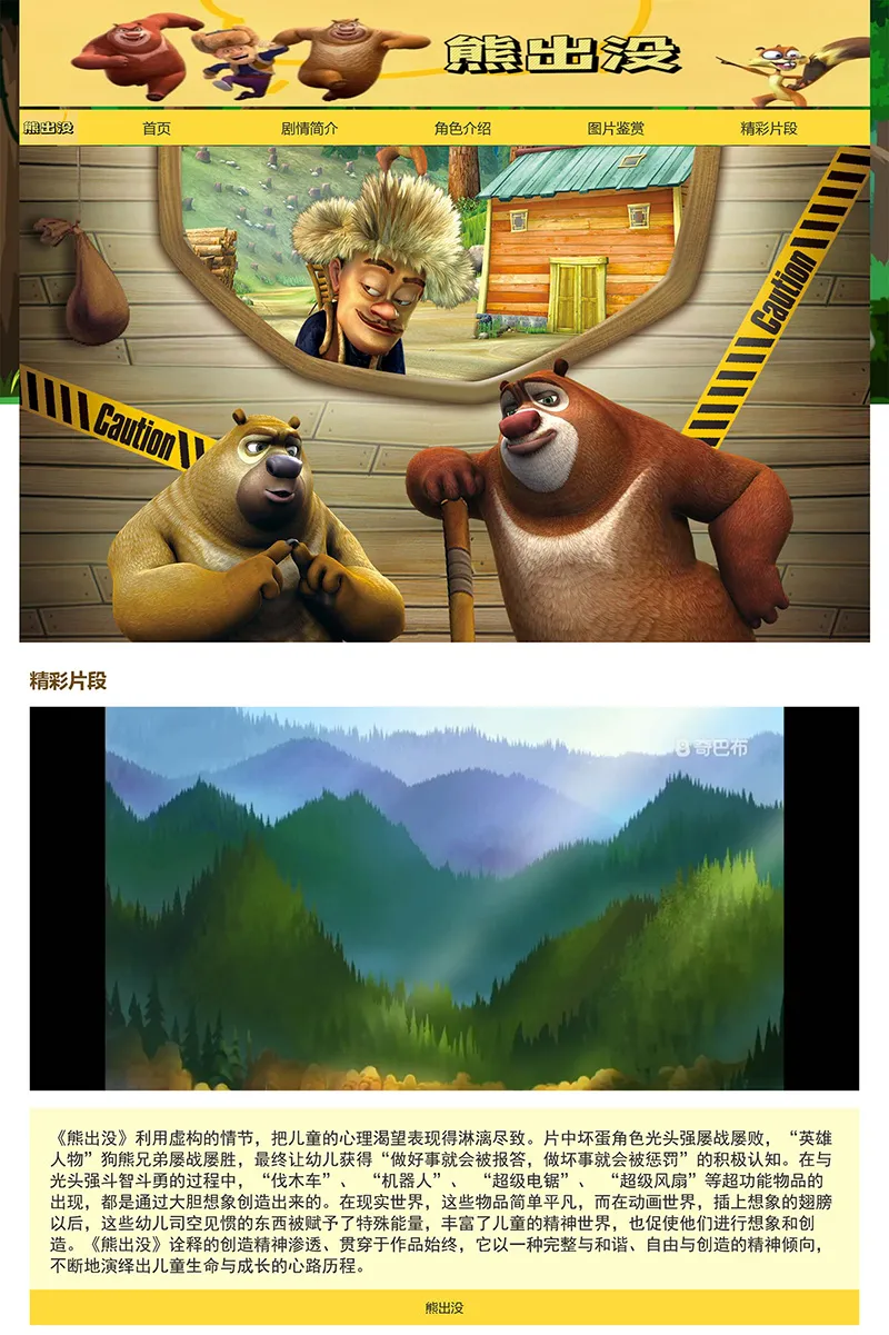 动漫主题纯html+css网页之《熊出没》 静态网页模板